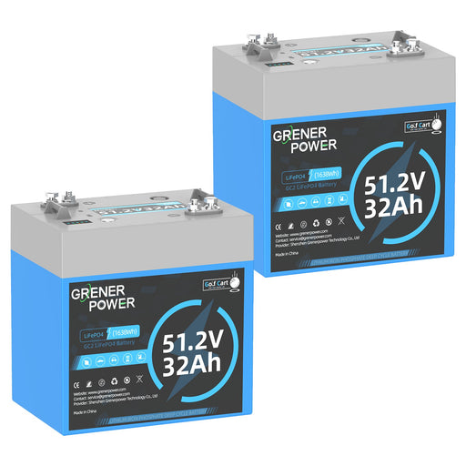 GrenerPower 48V (51.2V) 32Ah Golf Carts LiFePO4 Battery, 60A BMS, 1638.4Wh Energy (2 Packs)